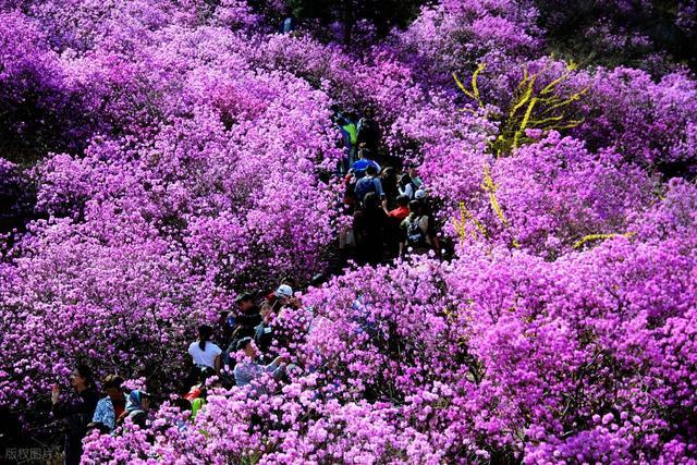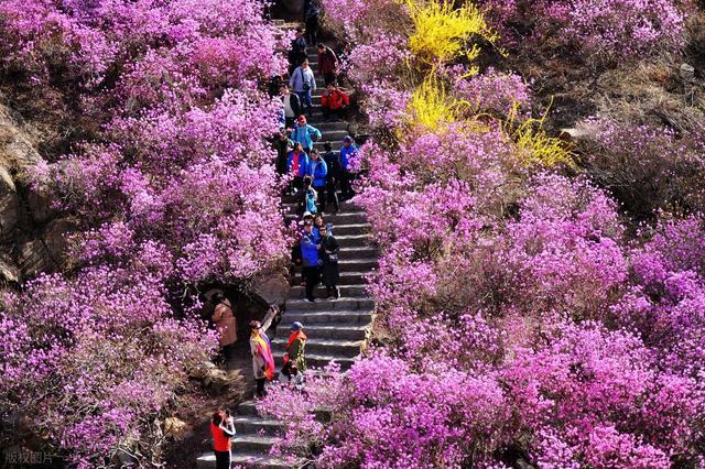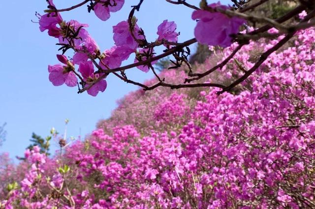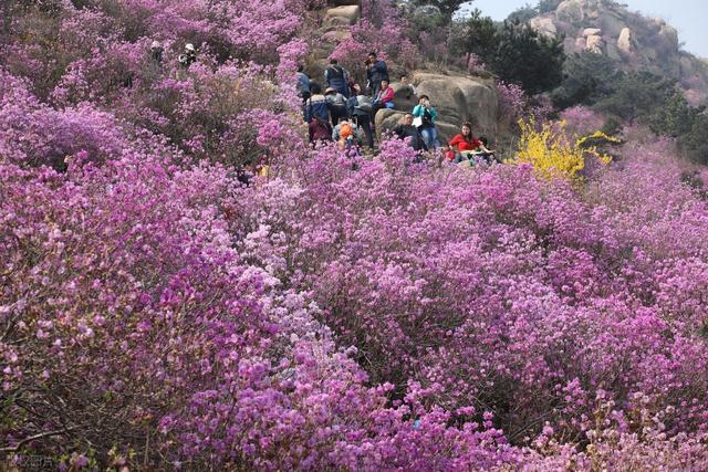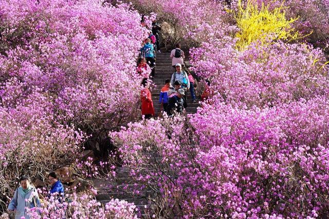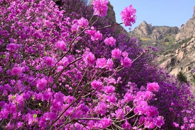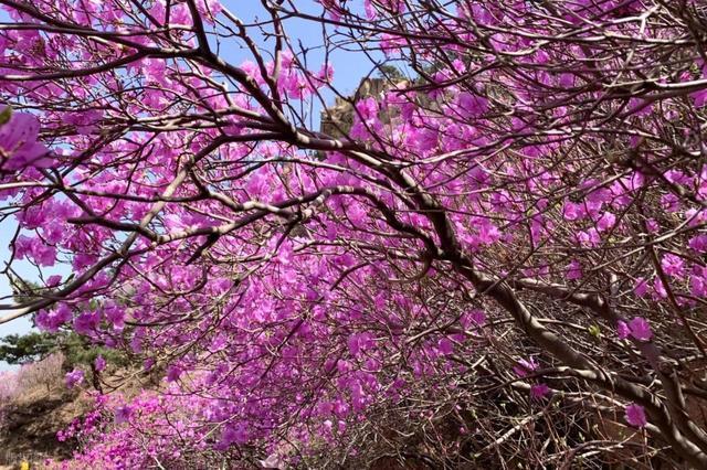 在青岛赏花,一定不能错过大珠山的紫色浪漫花海,这里是杜鹃花种类繁多,红的、粉的、紫的,层层叠叠铺满山坡,好似置身于花海秘境中,太浪漫了!漫山遍野的杜鹃花,开的正热烈,十分壮观!珠山秀谷是杜鹃花海的主赏花区,这里的杜鹃花最密集,拍照也最出片。