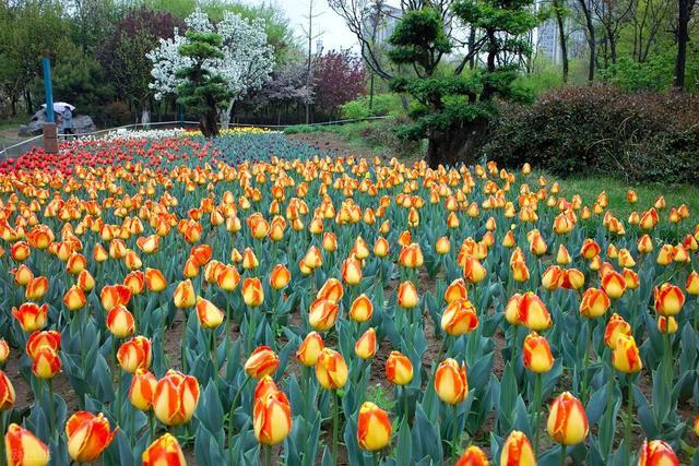 美出天际的中山公园,是青岛春日赏花的首选!园中上万株樱花竞相绽放,660米的樱花大道,整条路被粉白色的花云笼罩,风一吹,花瓣像雪片般簌簌落下,直接美出圈~除了赏樱花,到了4月还可以看大片的郁金香花海,这个春天一定要去一次中山公园!